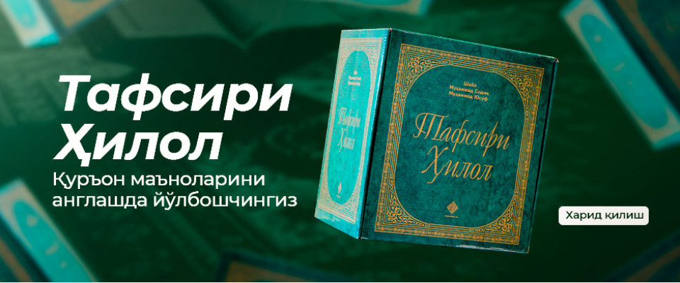 «Путеводитель мыслящего человека по Исламу» Настоящая книга «Путеводитель мыслящего человека по Исламу» была переведена на ру..39 000 сўм«Тафсир Хилал» 6-том(Перевод смыслов и толкование Священного Куръана)"Эту скромную попытку толкования Слова Всевышнего Аллаха посвящаю моему отцу Муха..58 000 сўм«Тафсир Хилал» 5-том(Перевод смыслов и толкование Священного Куръана) "Эту скромную попытку толкования Слова Всевышнего Аллаха ..62 000 сўм«Тафсир Хилал» 10-й том(Перевод смыслов и толкование Священного Куръана) "Эту скромную попытку толкования Слова Всевышнего Алла..85 000 сўм«Заем и связанные с ним вопросы»Книга рассматривает один из самых актуальных проблем нашего времени — вопросы долговых отношений. В ней описаны шариат..14 000 сўм«Основы Исламской этики» На русском языке издана очередная книга досточтимого шейха Мухаммад Садыка Мухаммад Юсуфа под назван..75 000 сўм«Тафсир Хилал» 30-джуз «Тафсир Хилал» — фундаментальный труд досточтимого шейха Мухаммад Садыка Мухаммад Юсуфа, ..50 000 сўм«Суннитские вероубеждения»Вероубеждение является основой образа жизни человека и руководством а его жизни, оно составляет суть нашей религии и определ..84 000 сўмҲадис ва ҳаёт